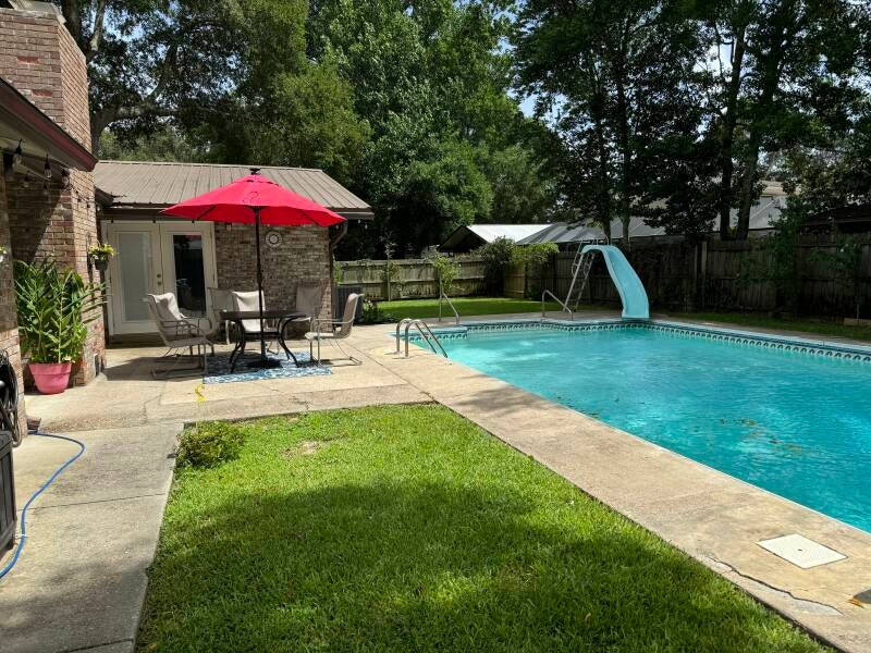 Blow dryer, soap, shampoo, dishwasher and clothes washing soap, fire and carbon monoxide detectors in every bedroom, hardwood and tile floors throughout, code locking front door, TVs in every room with streaming service provided, WiFi, full home generator, outdoor shower, gas fireplace, gas grill, and large fenced in yard with pool